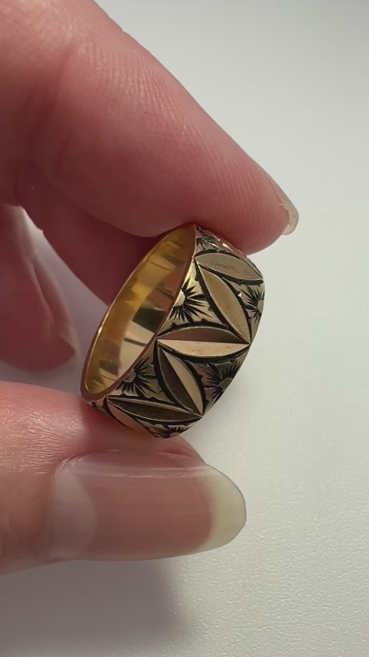 Indulge in the timeless elegance of our 14k Floral Etched Band Ring. This exquisite eternity band features delicate floral etchings on a wide band, crafted from luxurious 14k gold. Perfect for adding a touch of sophistication to any outfit, this ring is a must-have for any jewelry collection.