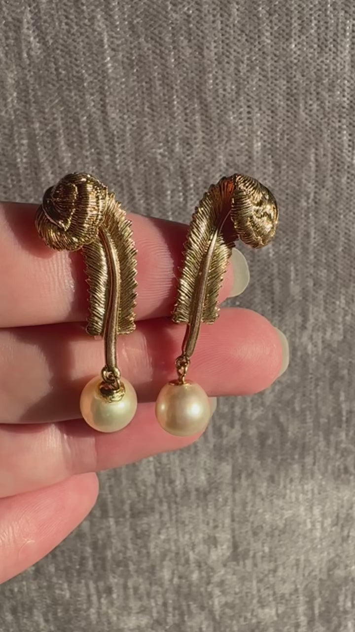 Indulge in vintage elegance with our 14k Tiffany Pearl Drop Feather Earrings. Inspired by the retro era, these stunning clip-ons are adorned with delicate feathers and lustrous pearls. Elevate your style with these lovey earrings.